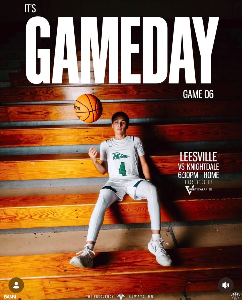 On the right is an example of Annion’s gameday post for Leesville’s Varsity Men’s Basketball team.
