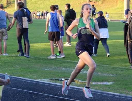 Senior, Banks Blizzard, third from the right, finishes his 1600m race at Mondoelite 2023. Banks is now a Captain of the track team. (Photo Permission of Jeff Sides)